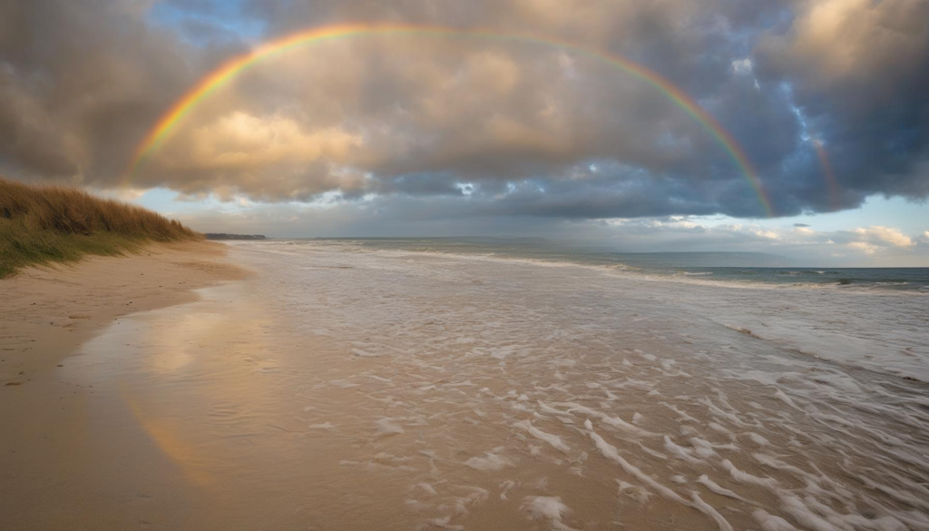 Ein Regenbogen am Strand ist nicht nur ein schönes Naturschauspiel, sondern auch ein Symbol für Hoffnung und Schönheit. Er erinnert uns daran, dass die Natur immer wieder überraschende und atemberaubende Momente bereithält, wenn wir nur die Augen dafür haben.